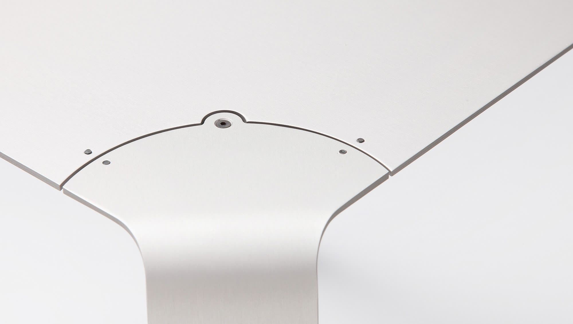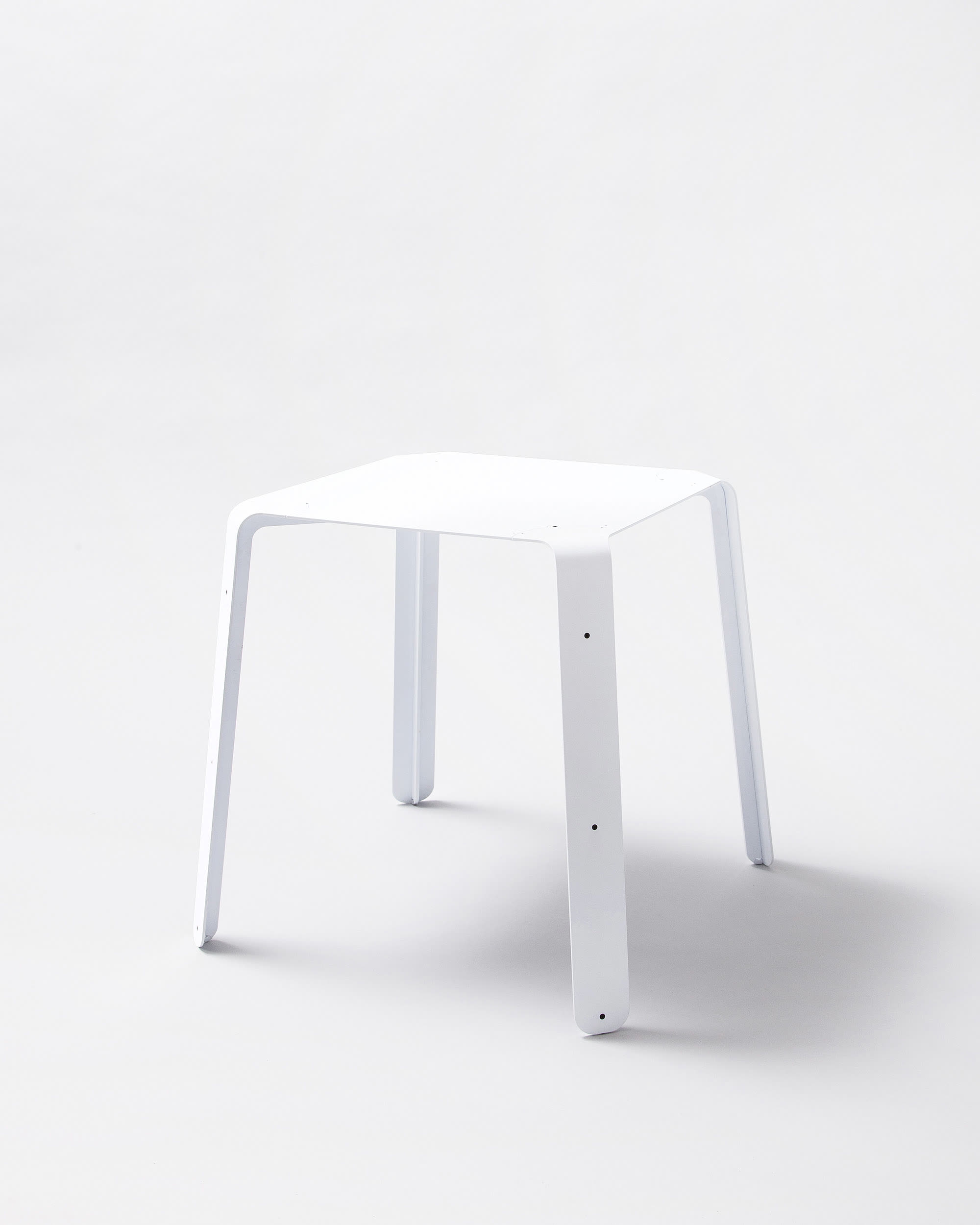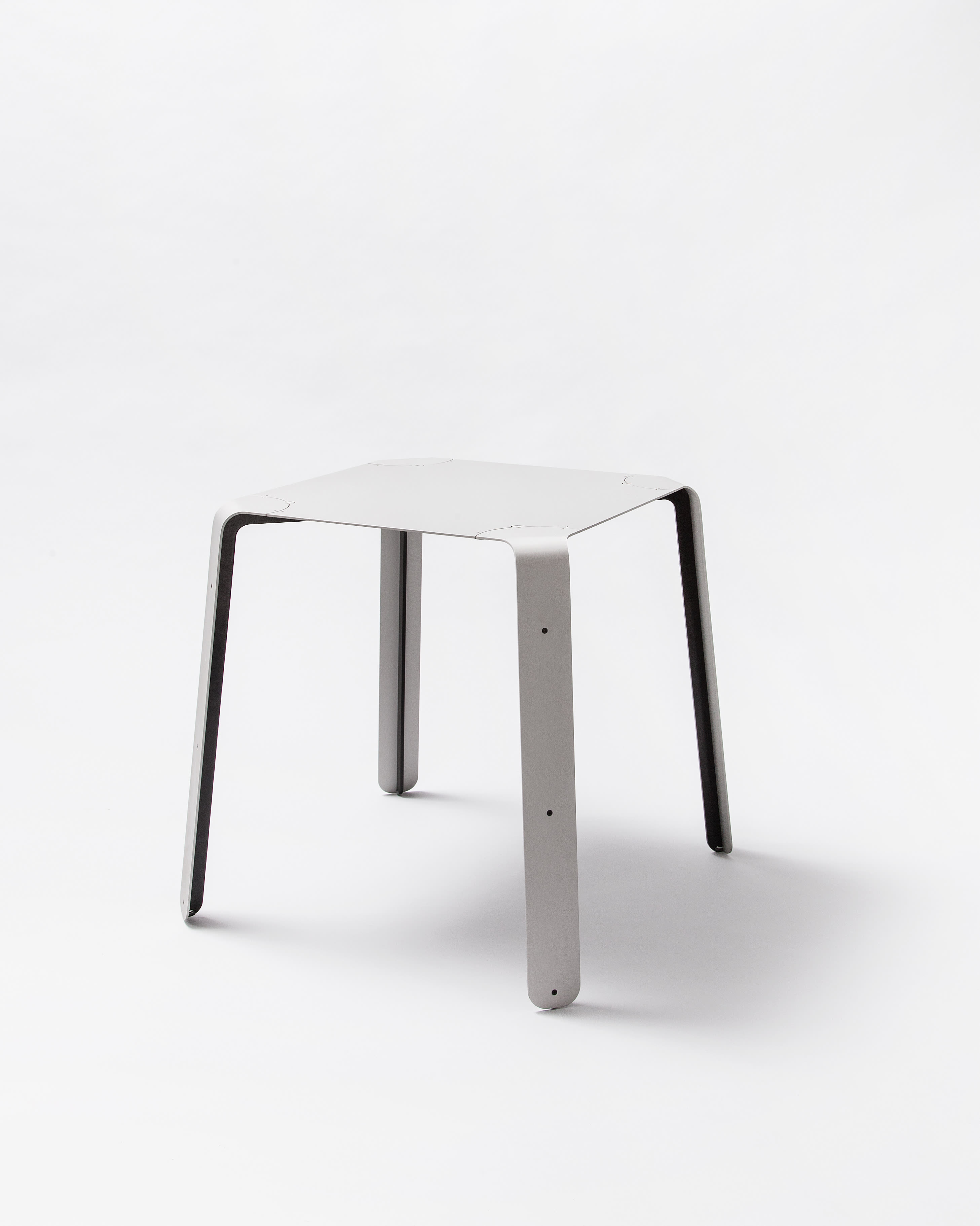 A set of tables I designed and built as a personal project — folded and joined anodized aluminium, with visible joint details left as part of the finish. The pieces are stocked by a handful of boutique design shops across South Africa, and the Alexander Theatre in Johannesburg commissioned 25 of them.